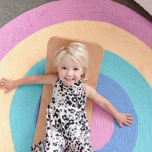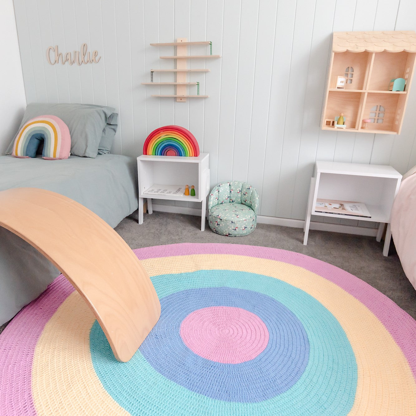 We love this crochet rainbow rug. It's completed my daughters 'big girl room' perfectly! The colours brighten up her otherwise dull floor. Thank you!
