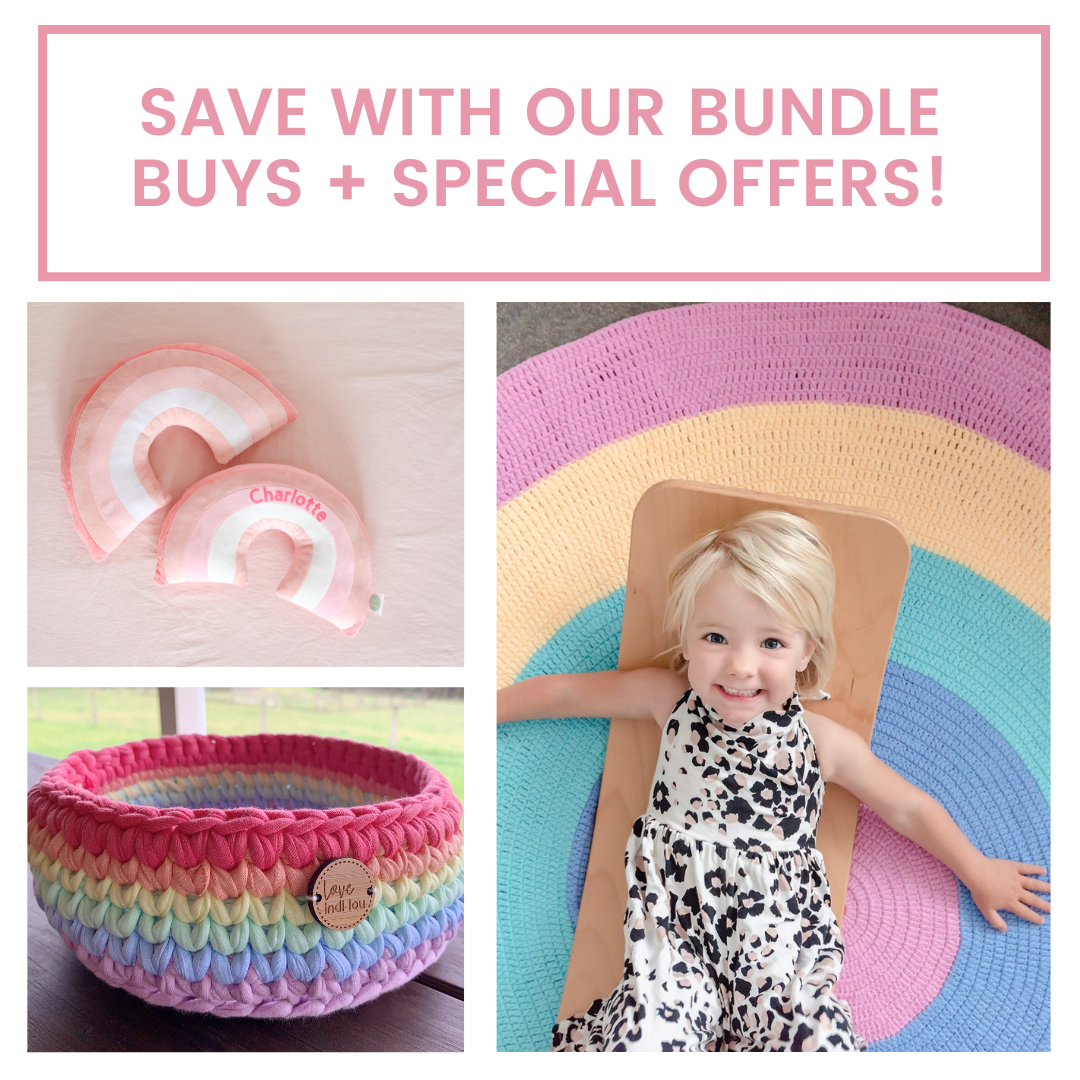Discover our Fun and Best Selling Machine Washable Cotton Crochet rugs, our stylish handmade storage baskets and our one of a kind Rainbow Plush Cushions today!